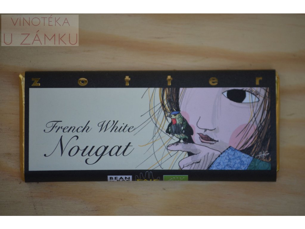 Bio, Fair trade tmavá hořká čokoláda plněná bílým nugátem Monte Limar z Francie. Složení: surový třtinový cukr, kakaová hmota, kakaové máslo, MANDLE, med, SUŠENÉ PLNOTUČNÉ MLÉKO, PISTÁCIE, LÍSKOVÉ OŘECHY, MÁSLO, SUŠENÉ ODSTŘEDĚNÉ MLÉKO, nekrystalizovaný třtinový cukr, SUŠENÉ VAJEČNÉ BÍLKY, SUŠENÁ SLADKÁ SYROVÁTKA, emulgátor SÓJOVÝ LECITIN, sůl, mletá vanilka, sušený zázvor, skořice. Obsah kakaové sušiny v čokoládě min. 60 %. Výživové údaje na 100g: Energetická hodnota 2258kj/544kcal, Tuky 37g z toho nasycené mastné kyseliny 17g, Sacharidy 41g z toho cukry 38g, Bílkoviny 9,3g, Sůl 0,23g. Hmotnost 70g, jednotková cena 157,70Kč/100g.