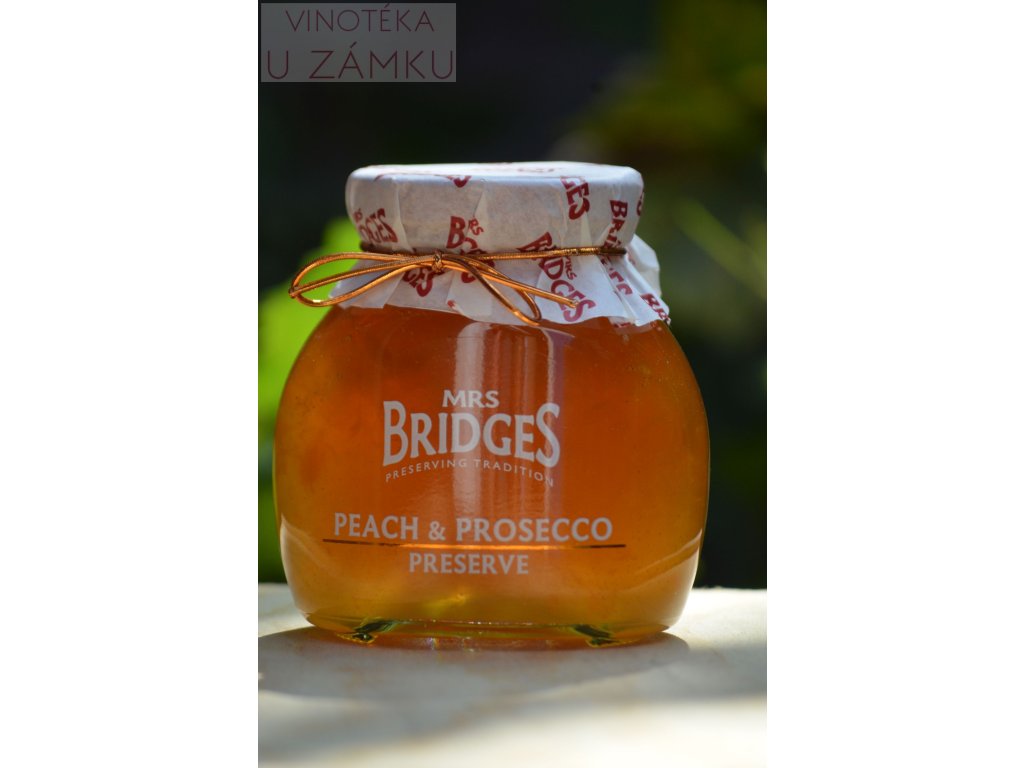 Složení: Cukr, broskev, želírující látka: ovocný pektin, prosecco (0,9 %), Marc de Champagne (0,5 %) citrónová šťáva (z koncentrátu), regulátor kyselosti: kyselina citronová. Připraveno ze 45 g ovoce na 100 g. Celkový obsah cukru 65g na 100g. Výživové údaje na 100g: Energetická hodnota 1169kj/275 kcal, Tuky 0g z toho nasycené mastné kyseliny 0g, Sacharidy 67,4g z toho cukry 67g, Bílkoviny 0,5g, Sůl 0g. Hmotnost 340g, jednotková cena 44,42Kč/100g.