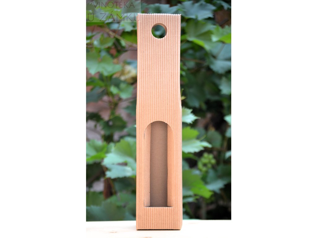 Přírodní papírová krabička na 1 lahev s okénkem, vlnitá lepenka.