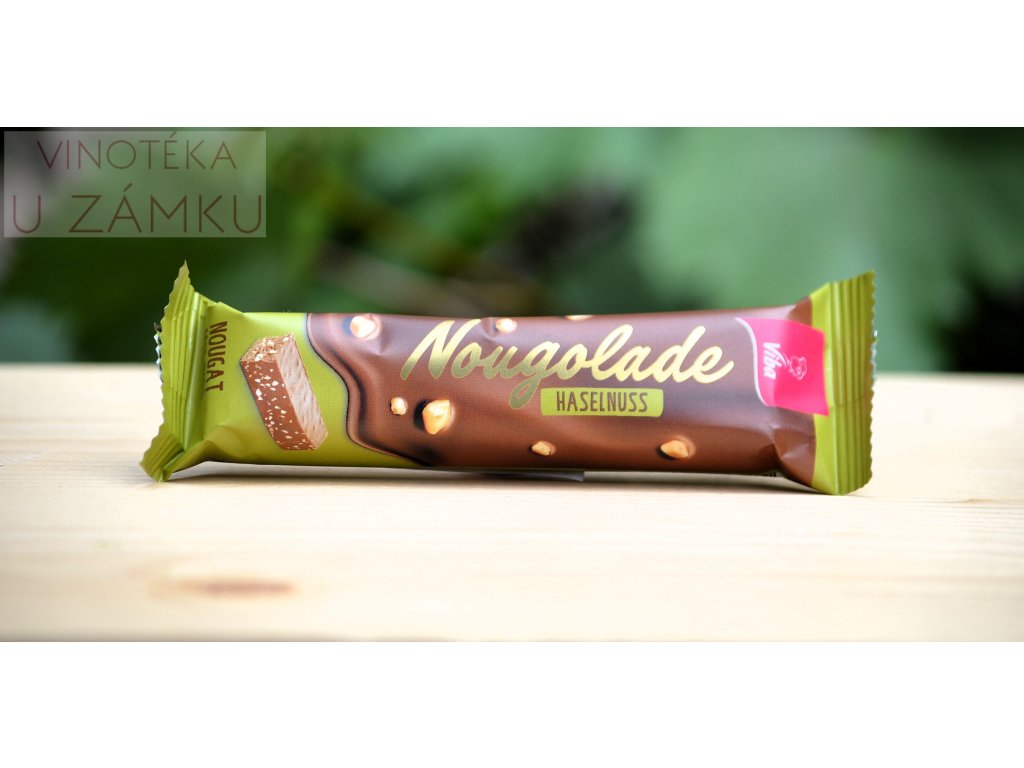 Nugátová tyčinka s kousky lískových oříšků. Složení: cukr, pražené LÍSKOVÉ OŘECHY 37 %, kakaové máslo, kakaová hmota, sušené plnotučné MLÉKO v prášku, emulgátor: SÓJOVÝ lecitin; vanilka Bourbon. Výživové hodnoty ve 100 g: energetická hodnota 2404 kJ / 578 kcal, tuk 41,6g (z toho nasycené mastné kyseliny 6,2g), sacharidy 41,6g (z toho cukr 40,9), bílkoviny 7,8g, sůl 0,06g. Hmotnost 35g, jednotková cena 134,28 Kč/100g
