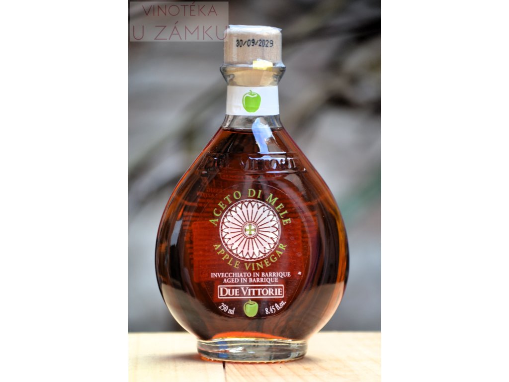 Jablečný ocet. Ocet kvasný- ovocný. Kyselost 5%. Složení: jablečný mošt. Obsahuje siřičitany. Výživové ůdaje na 100g: Energetická hodnota 764 kj/ 179 kcal, tuky 0 g z toho nasycené mastné kyseliny 0 g. Sacharidy 41 g z toho cukry 41 g. Bílkoviny 0,1g. Sůl 0,01 g. Objem 250 ml, jednotková cena 49,-Kč/100ml