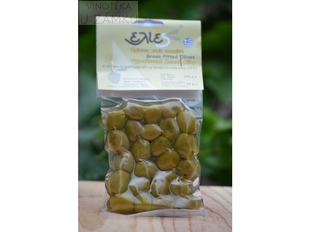 Olivy bez pecek ve slunečnicovém oleji. Složení: zelené vypeckované olivy 86%, slunečnicový olej 12%, sůl, regulátory kyselosti: kyselina citrónová, kyselina mléčná. Výživové údaje na 100 g: Energetická hodnota: 555 kJ/134 kcal, tuky: 10,3 g, z toho nasycené mastné kyseliny: 1,6 g, sacharidy: 8 g, z toho cukry: 0,1 g, bílkoviny: 1,43 g, sůl: 3,6 g. Hmotnost po odkapání 90 g, jednotková cena 37,78Kč/100gDoplňkové parametry