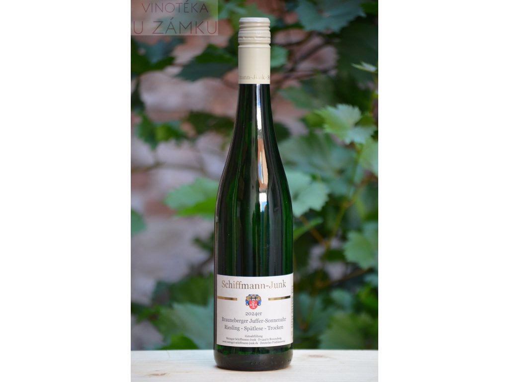 Suchý minerální přívlastkový Riesling z vyhlášené vinice Juffer-Sonnenuhr v oblasti Mosel, od rodinného vinařství Schiffmann Junk. Označení Spätlese odpovídá našemu pozdnímu sběru. Juffer-Sonnenuhr je strmá jižní trať proslulá svými břidlicovými půdami, které vínům dodávají minerální charakter a jemnou eleganci. Vína z této lokality patří mezi nejceněnější v celém Německu.