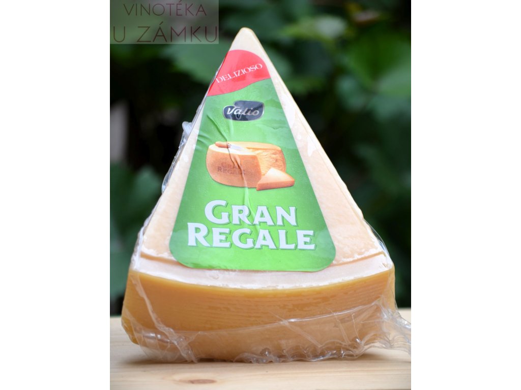 Toto zboží nezasíláme, jedná se o chlazený produkt. Sýr Gran Regale značky VALIO je lahodný estonský tvrdý sýr v italském stylu. Zraje 10 až 12 měsíců, během nichž získává zrnitou strukturu, pikantní aroma a výraznou chuť – skutečný gurmánský zážitek! Tento tvrdý sýr je vyráběn pod dohledem mistrů sýrárny a skvěle se hodí nejen jako pochoutka k ovoci a vínu, ale i jako ingredience při přípravě lahodných pokrmů. Složení: Paterizované kravské MLÉKO, mléčné kultury, zpěvňující latky chloridu vápenatého(E 509), konzervant LYZOZYM vyrobený z VAJEC(E 1105), mikrobiologické syřidlo. Bez laktózy(<0,01%). Alergeny: Obsahuje: 3. VEJCE a výrobky z nich, 7. MLÉKO a výrobky z něj. Hmotnost 1kg, cena za 100g 39,- Kč.
