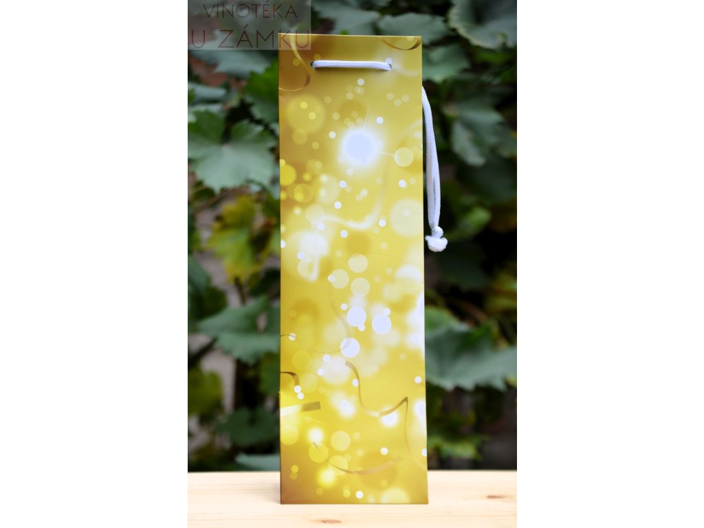 Taška papírová s vánočním motivem zlatá. 37x11x9 cm.