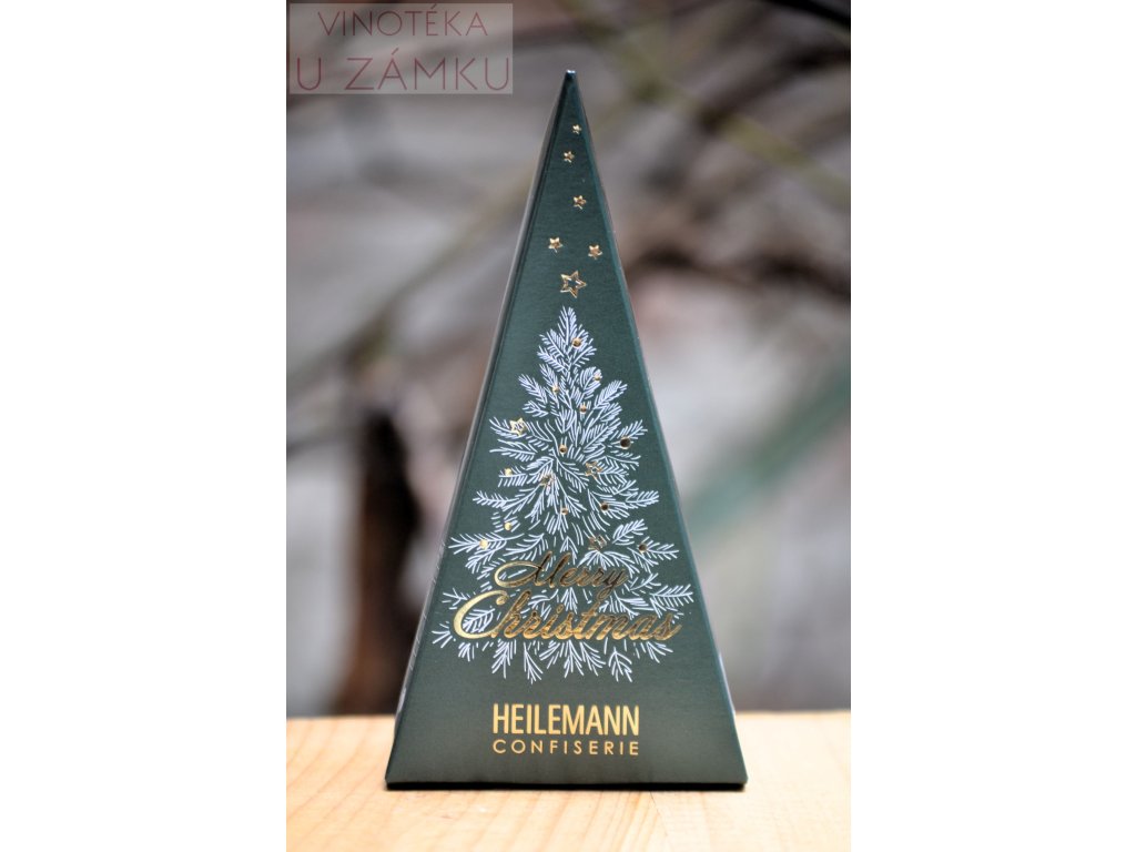 Dárkové balení ve tvaru vánočního stromku naplněného šesti kuličkami Heilemann Nougat. Složení: cukr, SUŠENÉ PLNOTUČNÉ MLÉKO, kakaové máslo, LÍSKOVÉ OŘÍŠKY (15,2 %), kakaová hmota, MÁSELNÝ TUK, KRÉMOVÁ SUŠENÁ, koriandr, skořice, anýz, hřebíček, emulgátory: lecitiny (SÓJA); mletá bourbonská vanilka, přírodní příchutě. Výživové hodnoty ve 100 g: energetická hodnota 2393 kJ / 573 kcal, tuky 37,6g (z toho nasycené mastné kyseliny 17,1g), sacharidy 49,4g (z toho cukry 48,4g), bílkoviny 7,6g, sůl 0,15g. Hmotnost 90g, jednotková cena 211,11,-Kč/100g